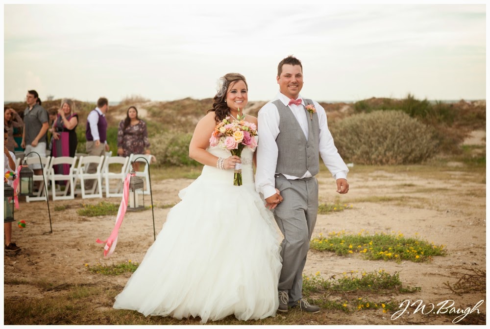 Since summer is upon us, I figured I’d share this beach wedding from last fall. Megan is one of my best friends and was my college roommate at Texas State. I was in the wedding so Amy shot it 🙂 I absolutely love that Megan chose coral and grey as her main wedding colors and her flowers were just to die for! They rented a VERY large beach house for the wedding; had the ceremony up against the dunes and the reception under the house. It did rain, but it was still a huge success!!! Hope you guys love this wedding, I know I did!